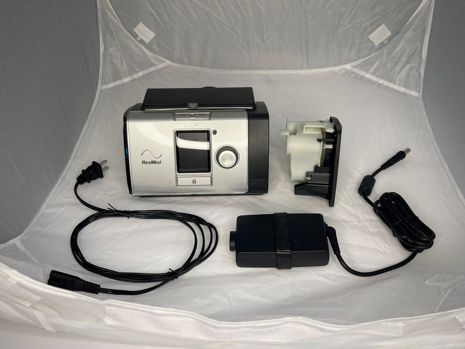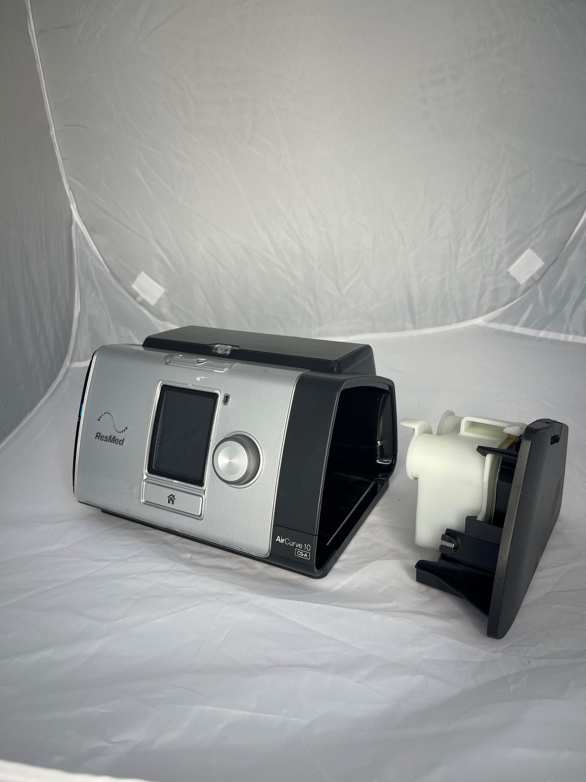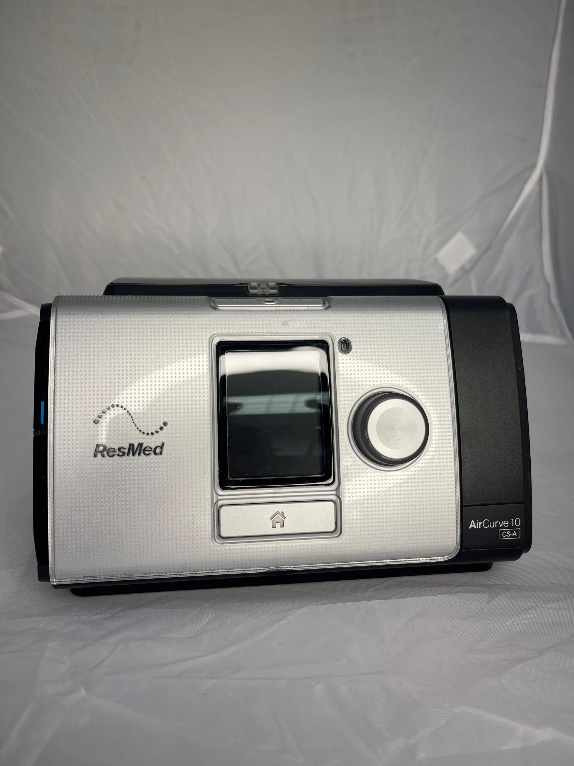 ResMed Aircurve 10 CS-A (refurbished & patient ready). Equivalent to ResMed AirCurve 10 ASV. Used to treat symptoms of central sleep apena. Monitors respiratory patterns on a breath by breath basis and makes necessary adjustments whenever resistance is detected.