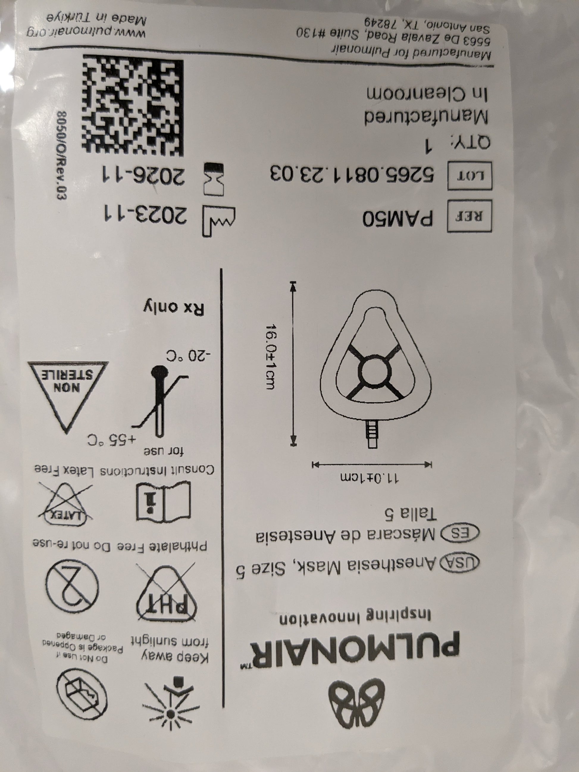 Pulmonair Anesthesia mask Size 5. New in bag. Please contact us for more information.
