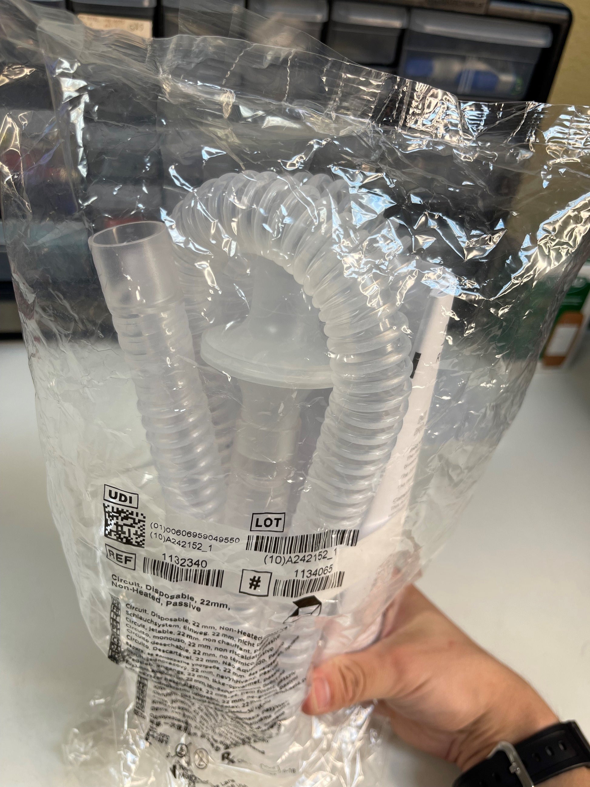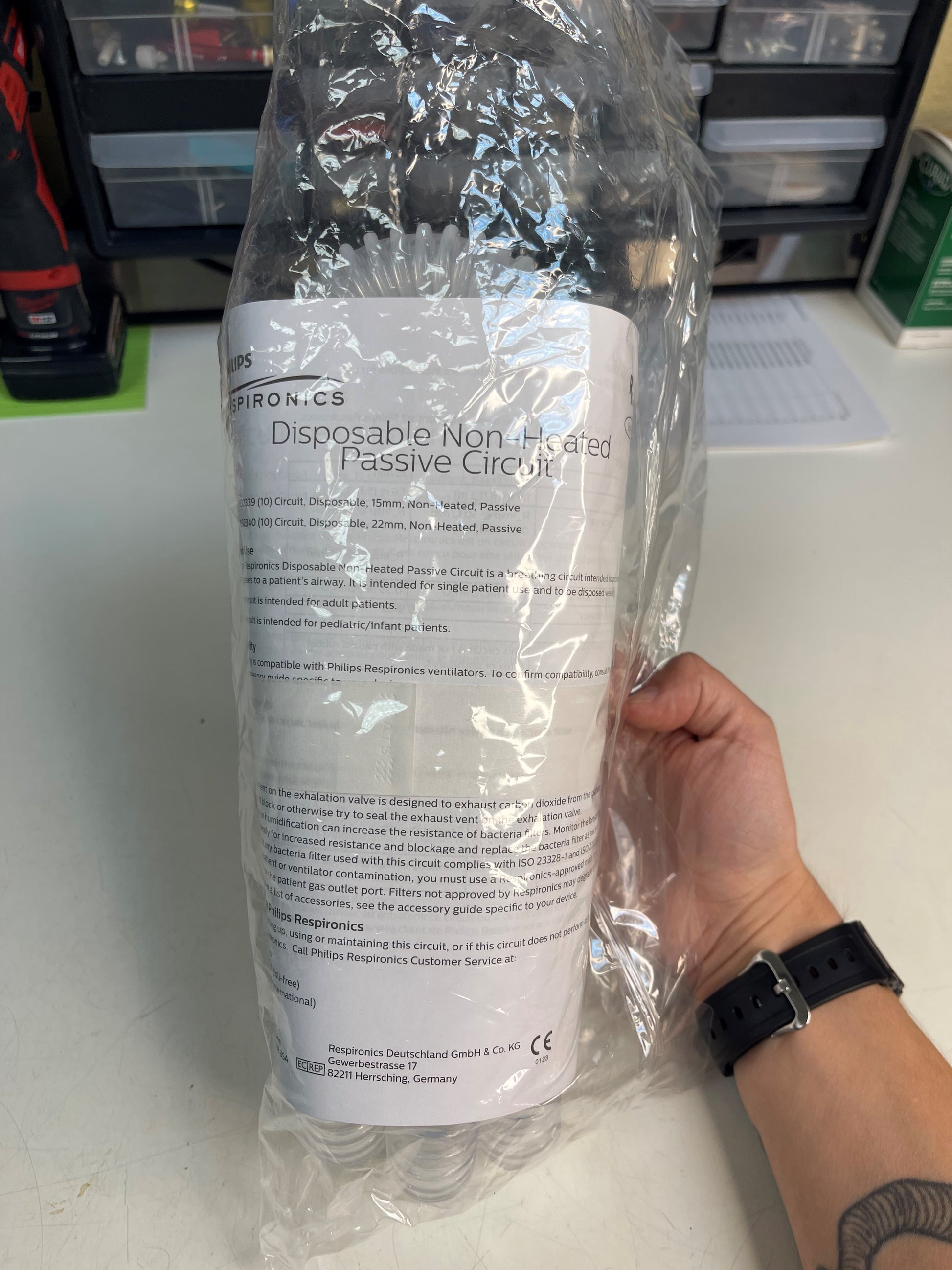 Intended Use: The Philips Respironics Disposable Non-Heated Passive Circuit is a breathing circuit intended to provide breathing gases to a patient’s airway. It is intended for single patient use and to be disposed weekly.